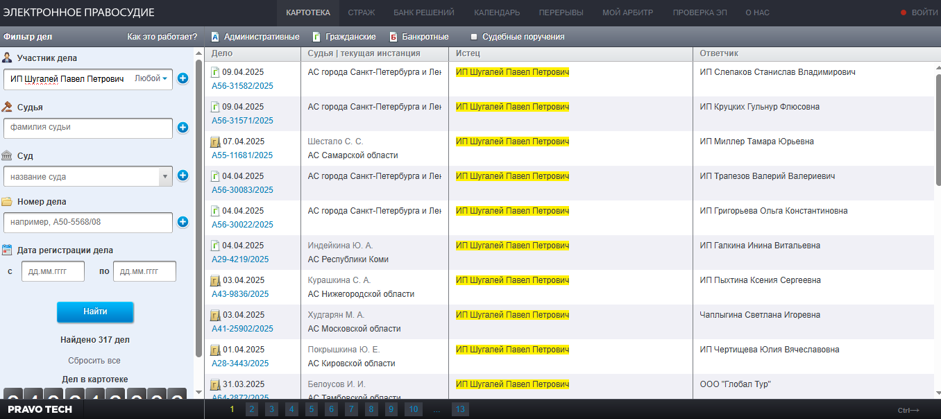 По состоянию на апрель 2025 года согласно картотеки арбитражных дел (kad.arbitr.ru/), подано более 317 дел.